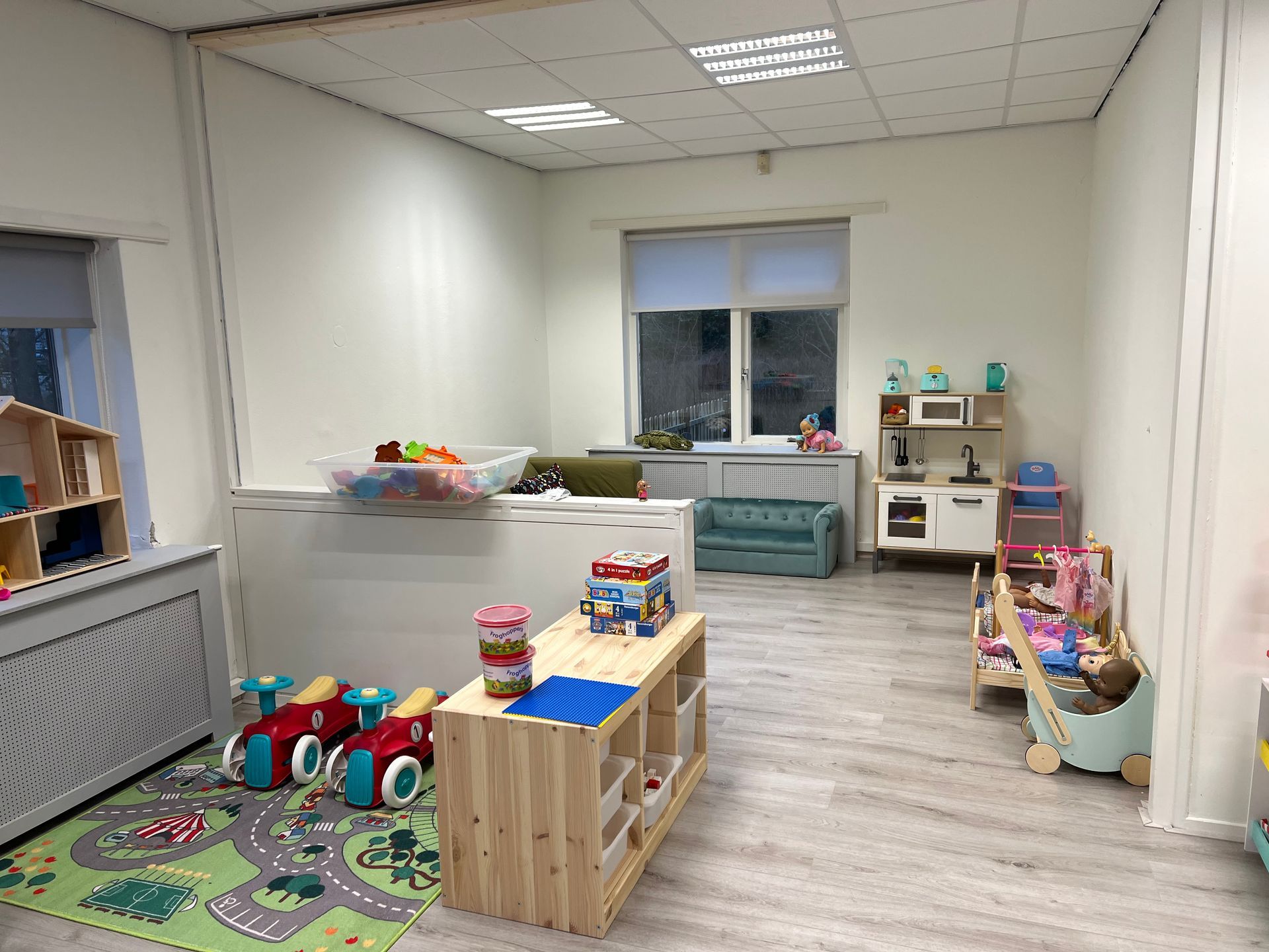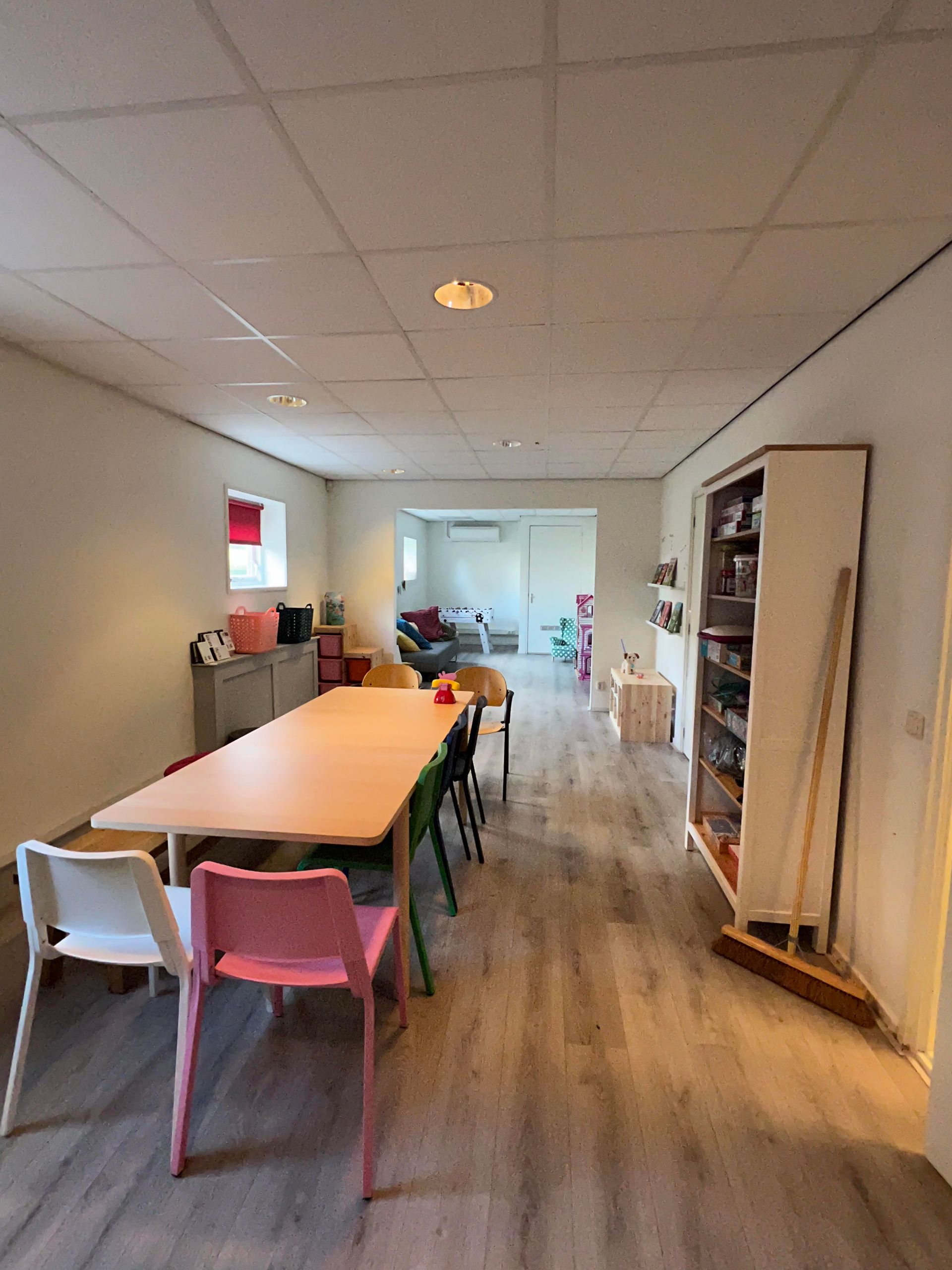 De binnenruimtes zijn licht, open en gezellig ingericht, met meubilair dat kinderen de vrijheid geeft om te bewegen en te ontspannen. Er zijn diverse speelhoeken waar kinderen hun creativiteit de vrije loop kunnen laten. Buiten hebben we knusse tuinen waar ze heerlijk kunnen spelen, en we maken regelmatig gebruik van nabijgelegen speeltuinen voor extra speelmogelijkheden in de frisse lucht.